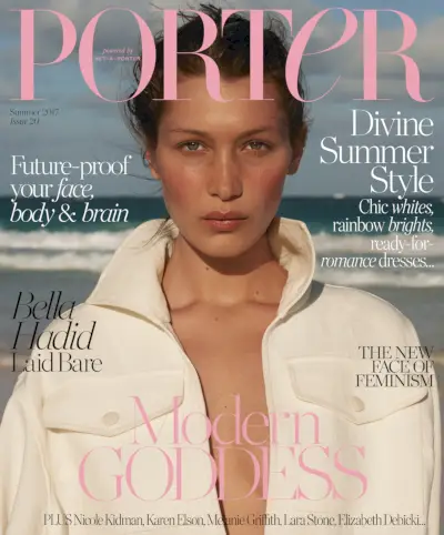 Bella Hadid indossa Sonia Rykiel sulla copertina, styling di George Cortina.Per gentile concessione di Porter/Terry Richardson