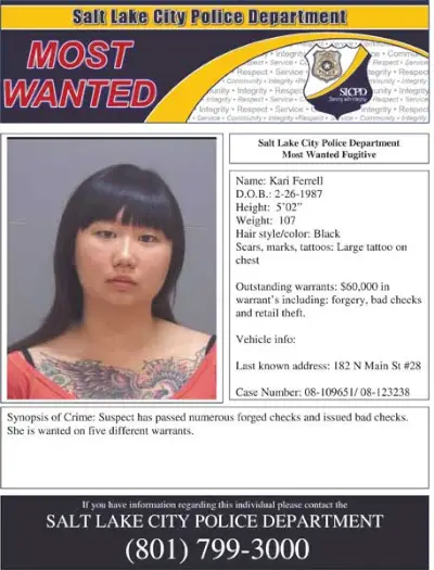 Nel giro di mezz’ora, la signora Ferrell lo tempestava di domande sulla sua storia sessuale: con quante donne aveva dormito e così via. Lei stava provando ad avvicinarsi a me, e io ero super preso per la prima parte, ha detto. Mi sono reso conto che avrei potuto divertirmi dopo il lavoro, ma poi ho pensato: 'Fammi controllare questa ragazza'. L'ha cercata su Google. È apparsa una foto del suo nuovo collega civettuolo sulla lista dei più ricercati del dipartimento di polizia di Salt Lake City, ricercato con cinque diversi mandati, tra cui il passaggio di 60.000 dollari in assegni scoperti, falsificazione e furto al dettaglio.