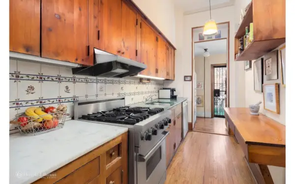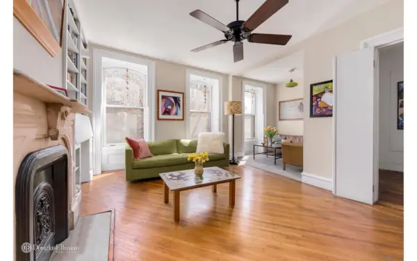 La casa risale al 1864 ed è ricca di dettagli originali, tra cui cinque caminetti decorativi (tutti con mensole ornate) e pavimenti in legno intarsiato, secondo elenco condiviso dai broker Douglas Elliman (DOUG) Steve Halprin e Jan Hashey. Ci sono soffitti alti e modanature classiche ovunque.