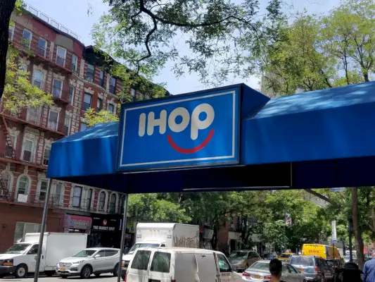 Mentre mi avvicinavo all'edificio, quasi mi aspettavo che qualcuno stesse appendendo un cartello con il nuovo logo. Non lo erano, il che è un bene, perché la b ha trasformato la faccia sorridente dell'IHOP in quella di una matricola del college che è svenuta a una festa e si è fatta disegnare un certo oggetto fallico sulla fronte. In questo scenario, i fan dell'IHOP si sentono come la matricola.