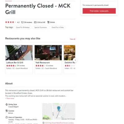 Anche la società di servizi di prenotazione di ristoranti online OpenTable elenca McK Grill come 'permanentemente chiuso'.