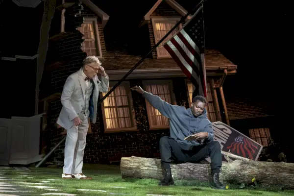 Cosa colma il divario? A destra del set decostruito di Beowulf Boritt (sobborgo dopo un terremoto) c’è un poster della campagna che è caduto da una facciata tranciata e si è conficcato nel terreno. STACEY ABRAMS 2020 recita il cartello. Immediatamente, vieni trasportato indietro nel 2019 tutto nero di Leon Molto rumore per nulla anche al Delacorte. Il cartello era ben visibile sulla villa di Leonato, un gesto sfacciato e ottimista in un anno elettorale. Frizzante, romantico e pieno di risate, Molto rumore è stato aggiornato in modo intelligente e profondamente soddisfacente. Questo Frazione non lo è. Il regista non fa alcun favore a se stesso invitando ai confronti.