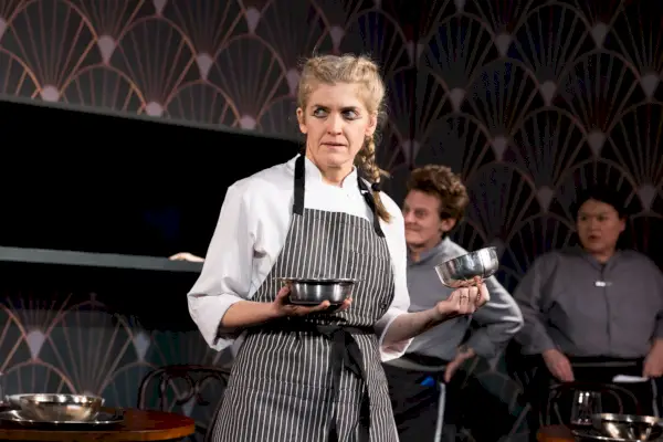 Nel corso degli anni ho consumato un sacco di drammi naturali e accurati con messaggi serviti su un piatto. Ho anche provato innumerevoli lavori sperimentali destinati a sconcertare le papille gustative. Qualunque cosa io stia sgranocchiando, la domanda (per il mio lavoro) deve sempre essere: di cosa parla questa commedia? Immaginate la mia sorpresa quando, a circa un terzo del percorso di Abe Koogler Pasto del personale , qualcuno tra il pubblico si è alzato e ha chiesto proprio questo, in tono di rabbiosa indignazione. Era stufa di tocchi surreali (uva verde che sostituisce la cucina gourmet) e di discorsi stravaganti (uno su una vita passata a bordo di una nave Piace IL Titanico ). È una commedia sui ristoranti o sulle persone che ci lavorano? si arrabbiò. Guarderei volentieri uno spettacolo teatrale su questo argomento, se lo fosse diverso .
