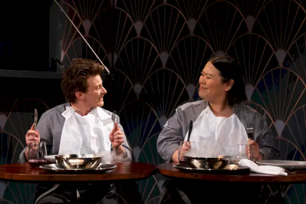 Queste sono le due modalità di Koogler: servizio (empatia, connessione) o fantasia (egoismo, perdita). L'azione inizia con una relazione provvisoria tra Ben (Greg Keller) e Mina (Susannah Flood), che si incontrano carini davanti ai laptop in un bar generico. Fanno una passeggiata in città e finiscono in un ristorante elegante ma vuoto. L'attenzione si sposta sulla descrizione stupita del cameriere della cantina come un vasto paese delle meraviglie sotterraneo, sulla presentazione dell'enigmatica chef Christina (Erin Markey) e sul retroscena di un subdolo e borbottante vagabondo (Markey, ancora una volta) che diventa il governatore dello spettacolo. imbroglione. Quando Ben e Mina si rendono conto che non c'è nessun pasto in arrivo, finiscono di nuovo per strada, solo per trovare la città buia e abbandonata, priva di persone ma brulicante di topi.